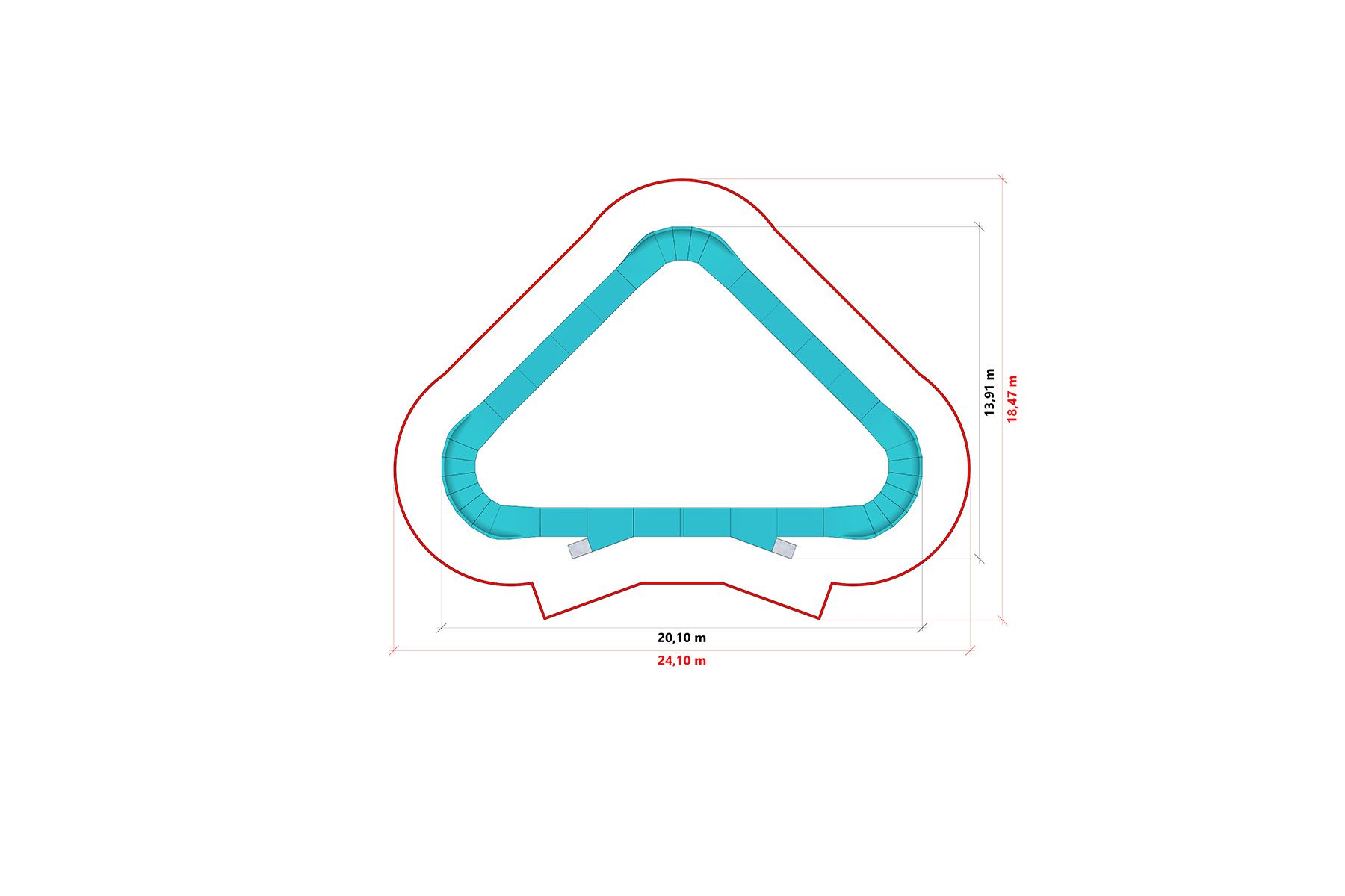 Die Bahn besteht aus einem Stahlverbundwerkstoff, der eine verzinkte Stahlstruktur mit einer widerstandsfähigen und rutschfesten Oberfläche kombiniert. Die verwendeten Materialien gewährleisten eine hohe Widerstandsfähigkeit gegenüber intensiver Nutzung und wechselnden Witterungsbedingungen und reduzieren gleichzeitig den Wartungsbedarf.
