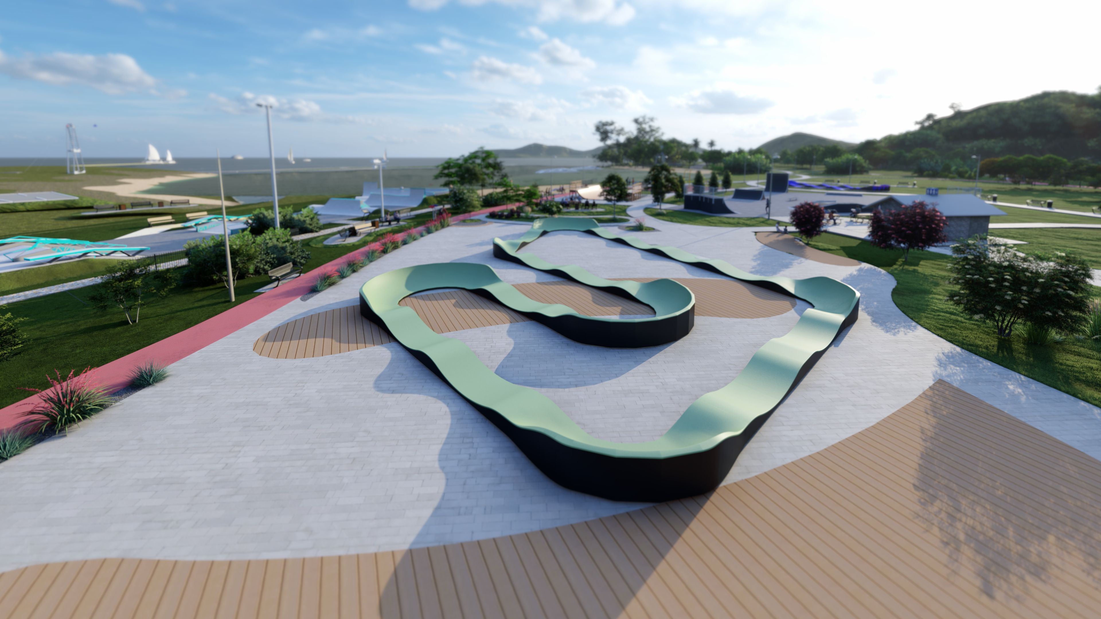 Pumptrack DELTA PF15E ist eine Bahn für Fortgeschrittene mit einer Laufflächenlänge von 96,1 m, ideal für Radfahrer, die eine Herausforderung und Abwechslung für ihre Fahrten suchen. Mit einer Fläche von 30,02 m x 33,63 m bietet sie eine breite und abwechslungsreiche Strecke, die für Anfänger und erfahrene Nutzer gleichermaßen geeignet ist. Dank seiner robusten Konstruktion und seines durchdachten Designs ist Pumptrack DELTA PF15E ideal für Parks, Erholungsgebiete und andere öffentliche Plätze geeignet und bietet allen Radfahrern ein intensives Erlebnis und eine aktive Freizeitgestaltung.