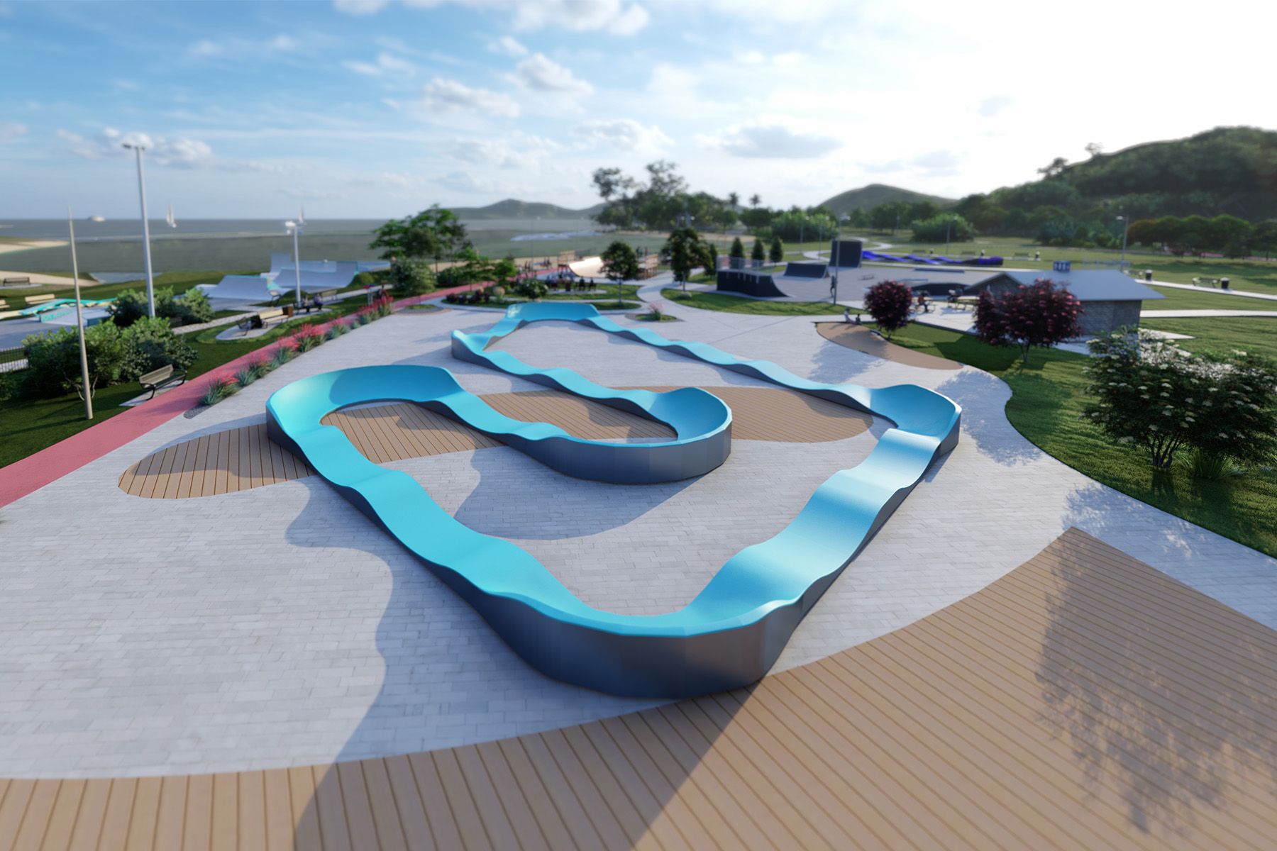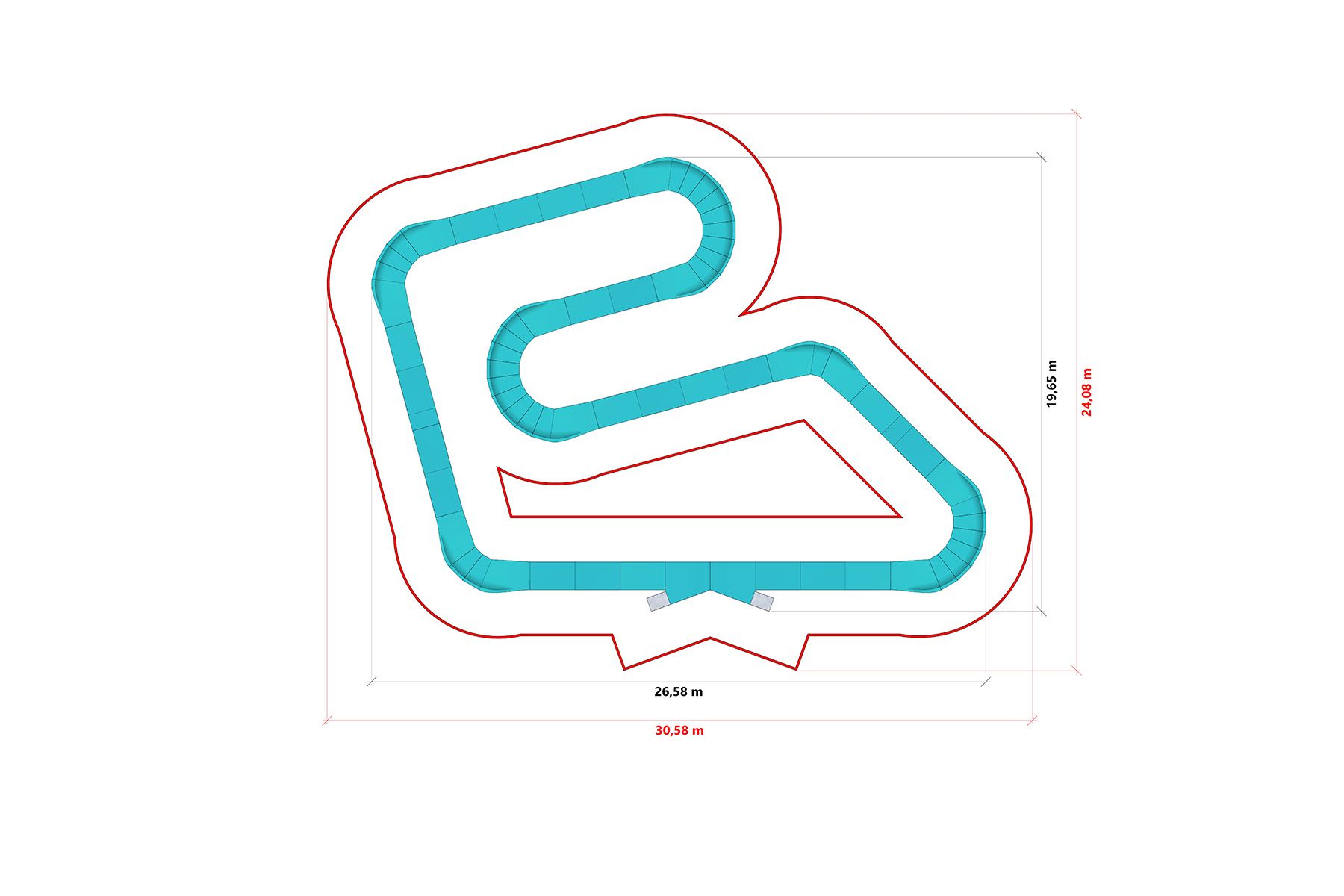 Die 96,1 m lange DELTA TF015 Pumptrack ist eine modulare Radrennbahn, die für Fahrräder, Skateboards, Inline-Skates und Scooter konzipiert wurde. Das Layout der Bahn basiert auf einer rhythmischen Abfolge von Buckelpisten und Kurven, die es ermöglichen, die Geschwindigkeit durch die richtige Körperarbeit aufrechtzuerhalten, ohne in die Pedale treten oder abstoßen zu müssen. Dank ihrer klaren Geometrie ist die Bahn intuitiv zu bedienen und eignet sich sowohl für Anfänger als auch für fortgeschrittene Benutzer.