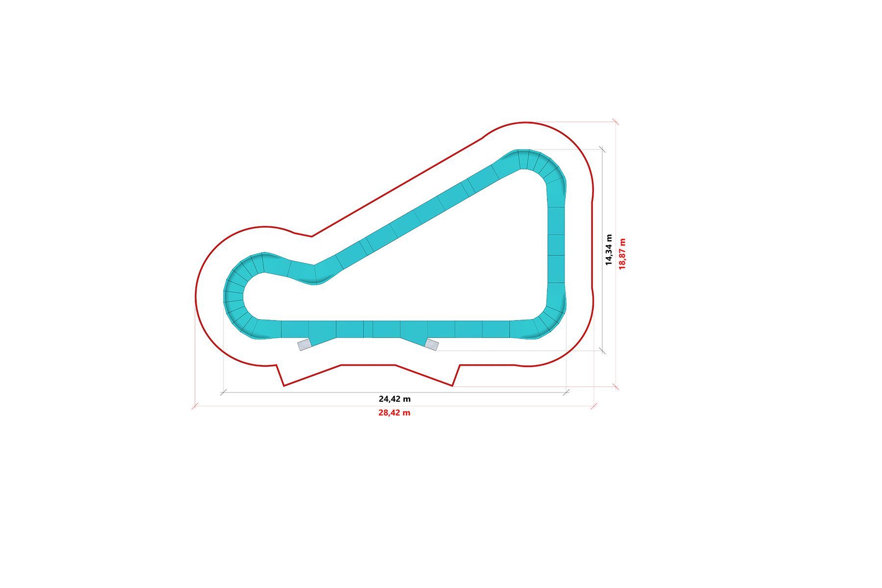 Die Bahn besteht aus einem Stahlverbundwerkstoff, der eine verzinkte Stahlstruktur mit einer widerstandsfähigen und rutschfesten Oberfläche kombiniert. Die verwendeten Materialien gewährleisten eine hohe Widerstandsfähigkeit gegen intensive Nutzung und wechselnde Witterungsbedingungen und verringern gleichzeitig den Wartungsbedarf.