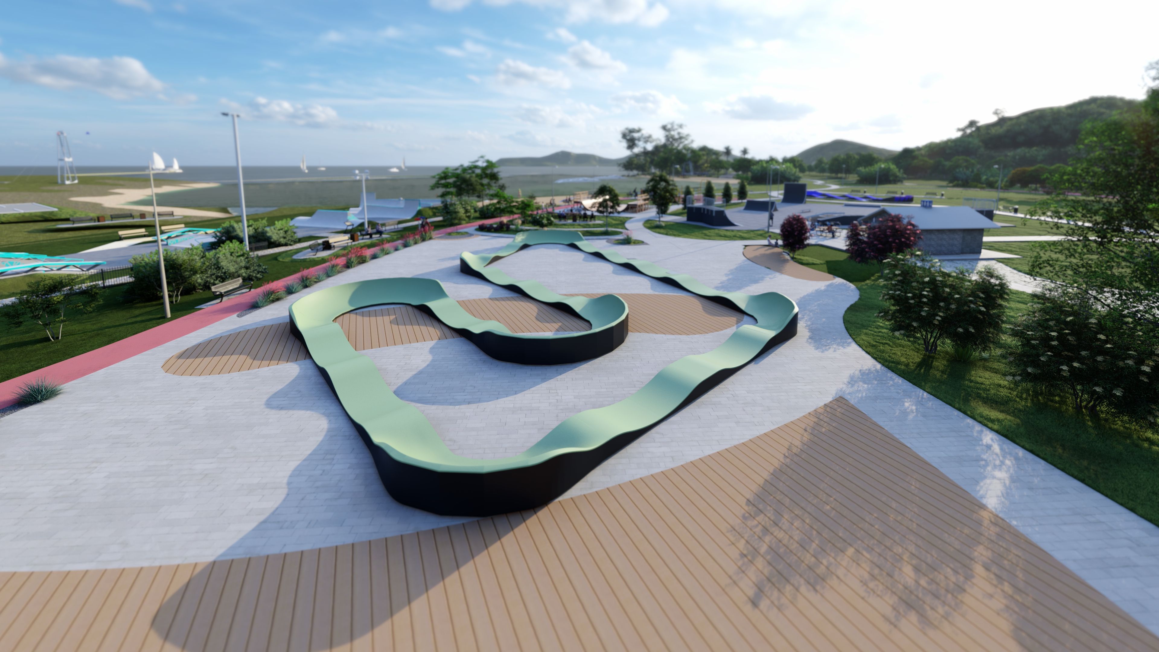Die Pumptrack GLADE PF13E ist eine Bahn für Fortgeschrittene mit einer Laufflächenlänge von 77,22 m, ideal für Radfahrer, die eine Herausforderung und Abwechslung suchen. Mit einer Fläche von 25,29 m x 17,22 m bietet sie eine breite und abwechslungsreiche Strecke, die sowohl für Anfänger als auch für erfahrene Nutzer geeignet ist. Dank seiner robusten Konstruktion und seines durchdachten Designs eignet sich der GLADE PF13E Pumptrack perfekt für Parks, Erholungsgebiete und andere öffentliche Plätze und bietet allen Radfahrern ein intensives Erlebnis und eine aktive Freizeitgestaltung.