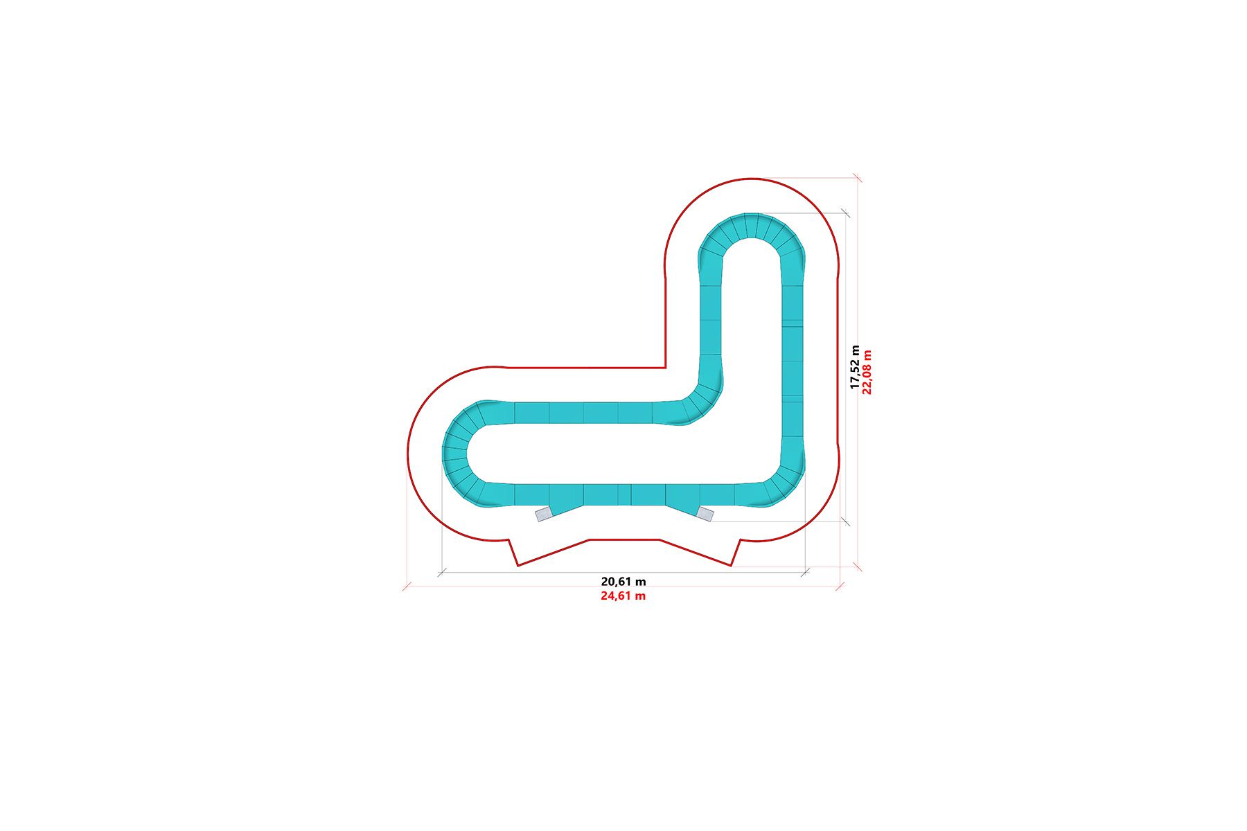 Die 65 m lange Pumptrack glacier TF008 ist eine modulare Radrennbahn für Fahrräder, Skateboards, Inline-Skates und Roller. Das Layout der Bahn basiert auf einer rhythmischen Abfolge von Buckelpisten und Kurven, die es ermöglichen, die Geschwindigkeit durch die richtige Körperarbeit beizubehalten, ohne in die...