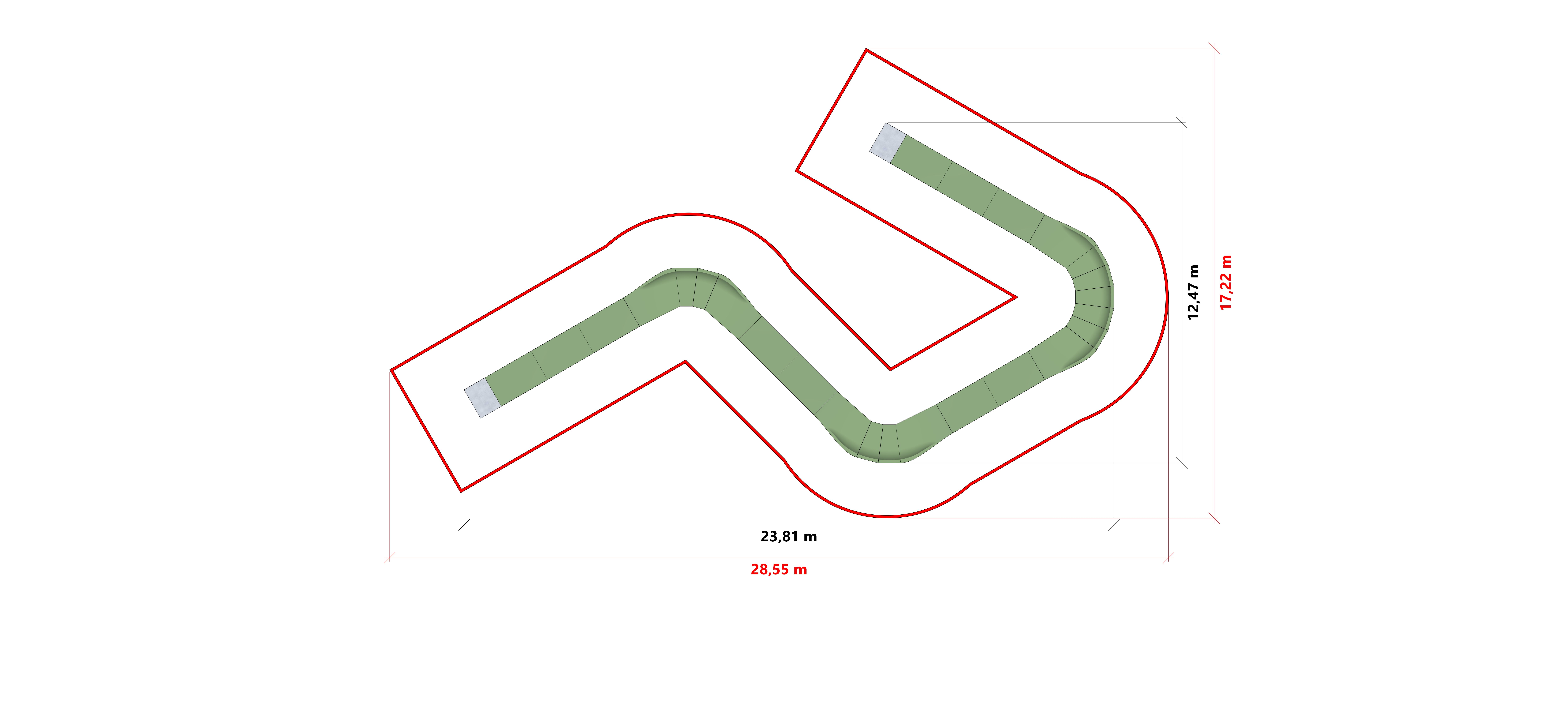 Pumptrack LINE PFL4 ist eine Bahn für Fortgeschrittene mit einer Laufflächenlänge von 38,6 m, ideal für Radfahrer, die eine Herausforderung und Abwechslung suchen. Mit einer Fläche von 28,55 m x 17,22 m bietet sie eine breite und abwechslungsreiche Strecke, die für Anfänger und erfahrene Nutzer gleichermaßen geeignet ist. Mit seiner robusten Konstruktion und seinem durchdachten Design eignet sich der Pumptrack LINE PFL4 perfekt für Parks, Erholungsgebiete und andere öffentliche Plätze und bietet allen Radfahrern ein intensives Erlebnis und eine aktive Freizeitgestaltung.