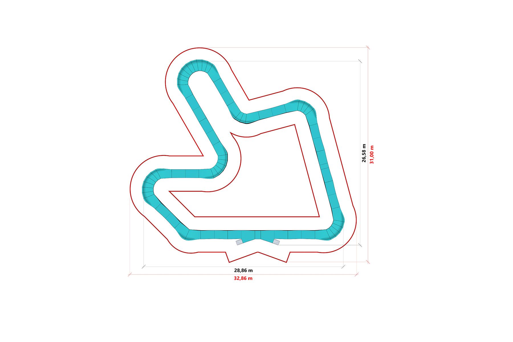 Die Bahn besteht aus einem Stahlverbundwerkstoff, der eine verzinkte Stahlstruktur mit einer widerstandsfähigen und rutschfesten Oberfläche kombiniert. Die verwendeten Materialien gewährleisten eine hohe Widerstandsfähigkeit gegenüber intensiver Nutzung und wechselnden Witterungsbedingungen und reduzieren gleichzeitig den Wartungsbedarf.