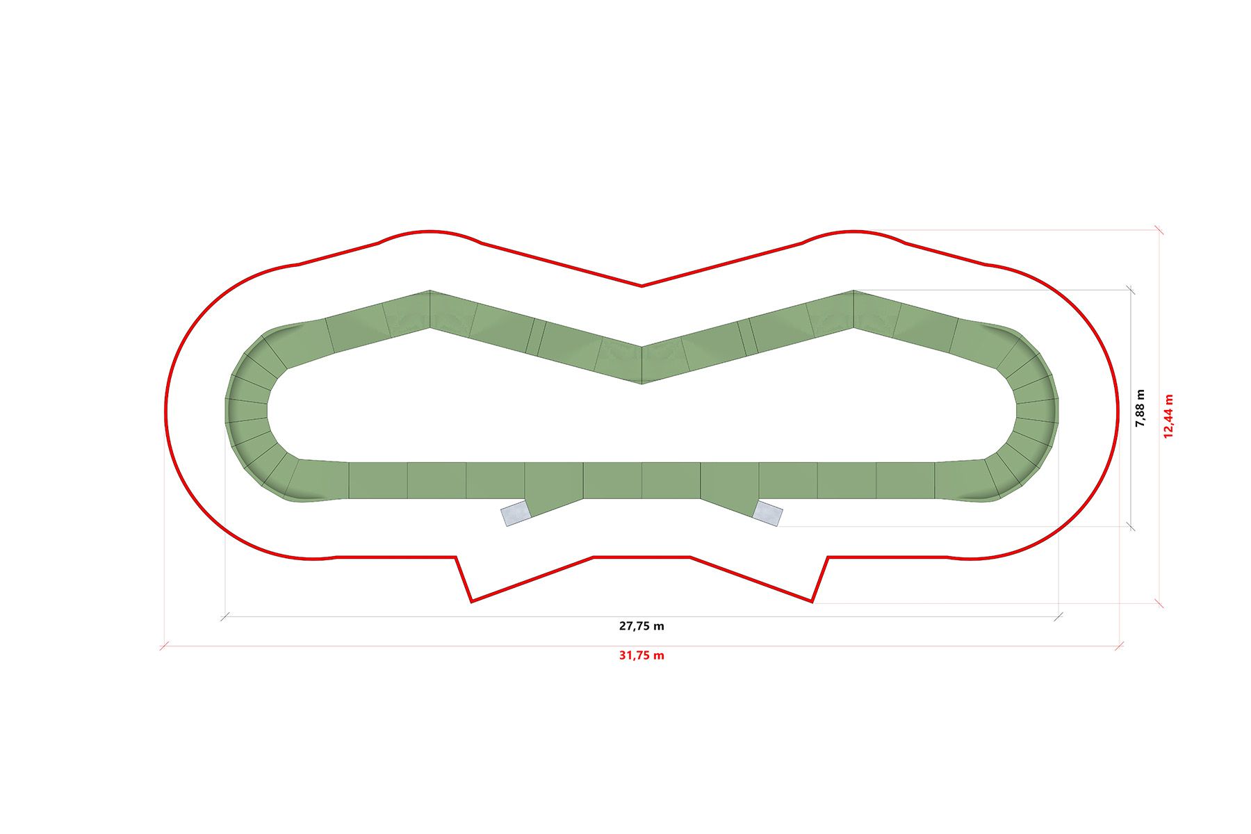 Die 64 m lange Flow Series ORAVA TF024 Pumptrack ist eine Bahn, die für eine dynamischere und fließendere Fahrt konzipiert ist. Die charakteristische Anordnung von Kurven und Wellen schafft eine Fahrlinie, die den Benutzer nicht nur in die Auf-Ab-, sondern auch in die Rechts-Links-Bewegung einbezieht, wodurch die...