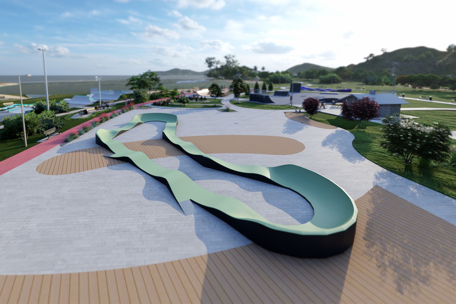 Die 60,1 m lange Flow Series SEINE Pumptrack ist eine Bahn, die für eine dynamischere und flüssigere Fahrt konzipiert wurde. Die charakteristische Anordnung von Kurven und Wellen schafft eine Fahrlinie, die den Benutzer nicht nur in eine Auf- und Abwärtsbewegung, sondern auch in eine Rechts-Links-Bewegung verwickelt, was die Fahrt rhythmischer und intuitiver macht. Diese Geometrie ermöglicht es dem Fahrer, die Geschwindigkeit beizubehalten, ohne in die Pedale treten zu müssen, und bietet gleichzeitig mehrere Möglichkeiten, die Fahrlinie zu wählen.