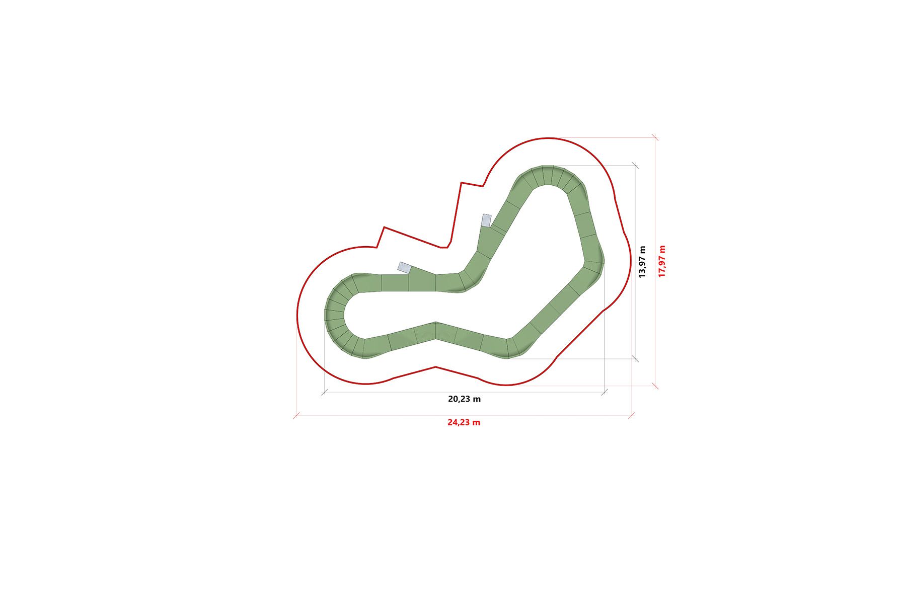 Die Bahn wird in Holztechnik auf der Grundlage einer modularen Sperrholzkonstruktion mit einer haltbaren Lauffläche hergestellt. Das modulare System ermöglicht eine schnelle Installation auf Asphalt, Beton oder entsprechend vorbereiteten Böden sowie die Möglichkeit einer zukünftigen Erweiterung und Neukonfiguration der Bahn.