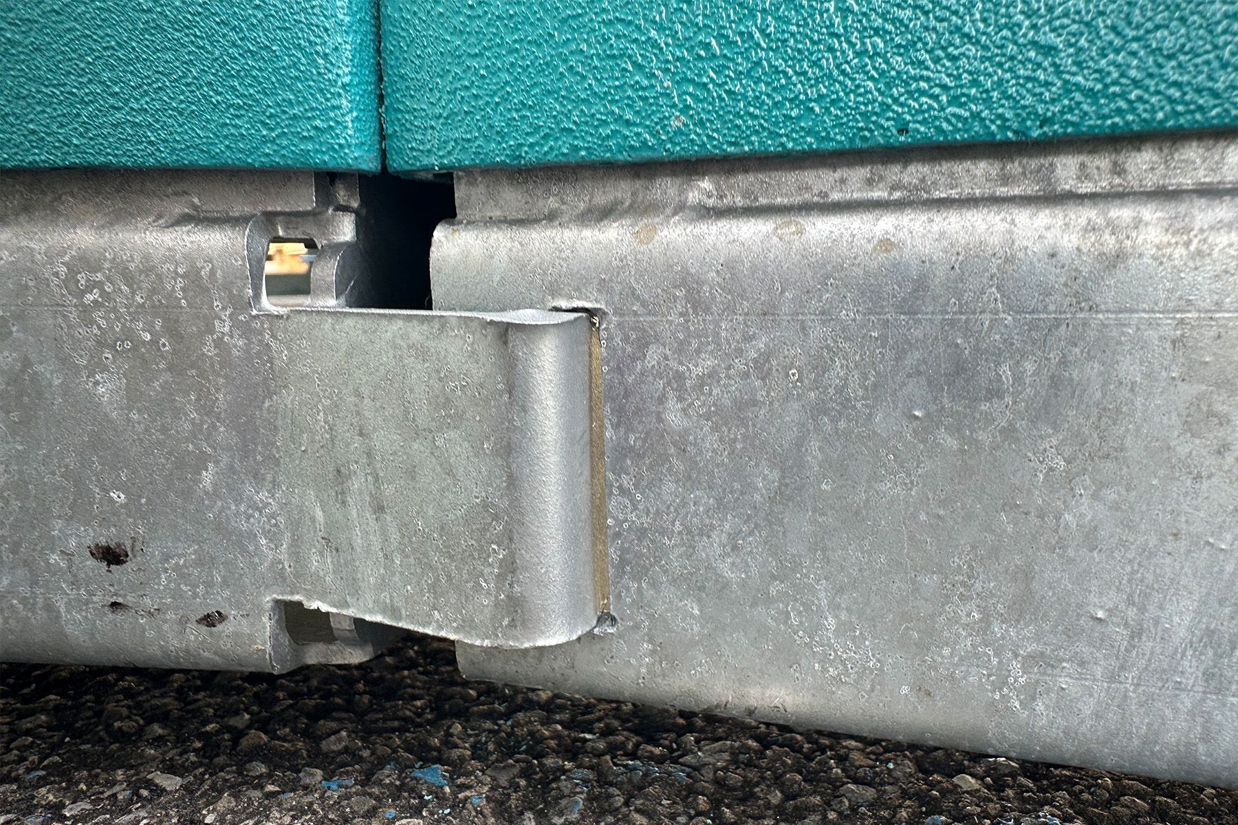 - Die Lauffläche ist in Marine RAL 5018 und die Seitenwände in Grau RAL 7046 gehalten.